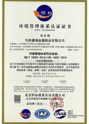 環(huán)境體系認(rèn)證證書