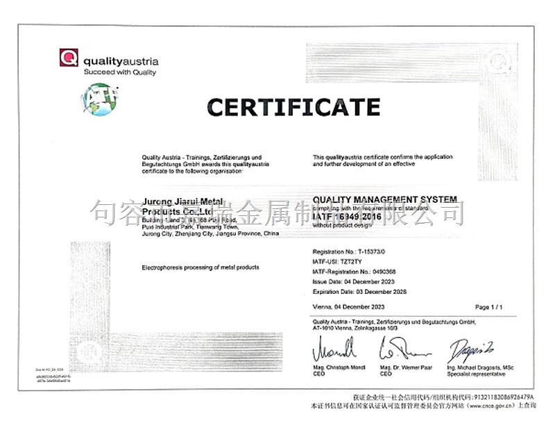 質(zhì)量管理系統(tǒng)認(rèn)證證書(二)